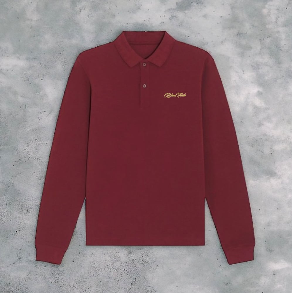 BURGUNDY GOLD SIGNATURE LONG SLEEVE POLO